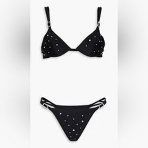 Stunning Alessandra Rich crystal-embellished underwired bikini in classic black. This ultra-glamorous two-piece features sparkly crystal accents, underwire support, and luxe Italian craftsmanship. Originally retailed for $620 — grab it here for a fraction of the price.