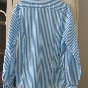 Striking vintage Italian man's shirt by Alessandro Gherardeschi of Florence. This large Boyfriend Shirt in turquoise or sky blue stripes on white background is great for him--- great for her!
