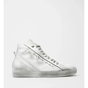 These white high-top sneakers feature a sleek leather upper and a minimalist design, making them a versatile choice for any casual occasion. The traditional lacing system and rubber sole ensure comfort and style, perfect for pairing with various outfits.