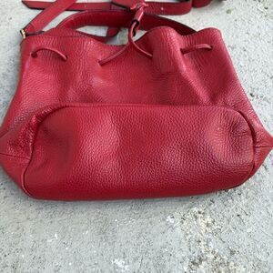 Super cute small drawstring bag with handle. It’s in good condition but not perfect so please check out the pictures. Measuring across the bottom is 9 x 9 x 4 with a handle drop of five and an adjustable shoulder strap. Made in Italy.