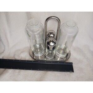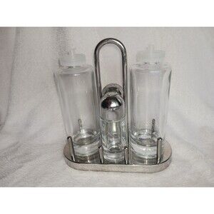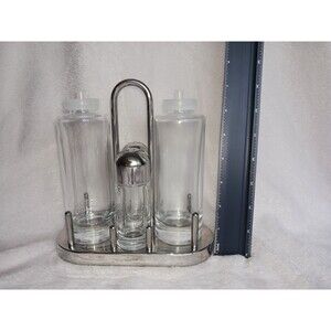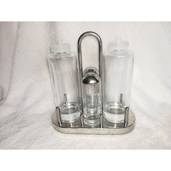 Alessi Italy Stainless Crystal Oil Vinegar Salt Pepper Holder Caddy Cruet