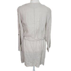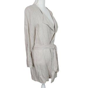 Alessia Pacini Sz Small Italian Wrap Cardigan 100% Linen Tan Roll Tab Sleeves