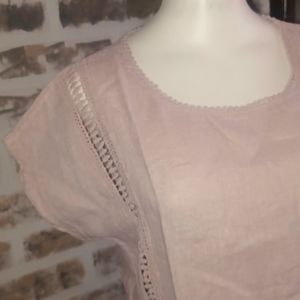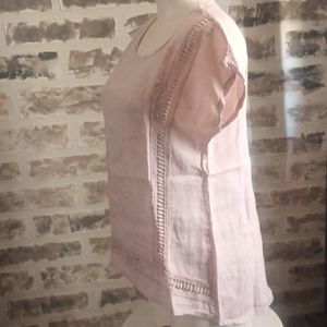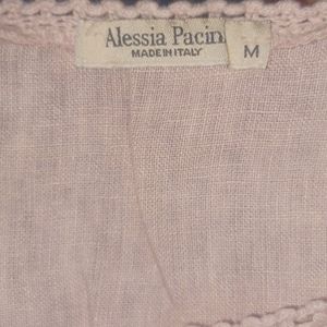 Alessia Pacini light pink top with a lace look in front and down across the bottom..