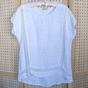 Alessia Pacini white linen blouse with lace cut-outs, beautiful drape, all natural fabric