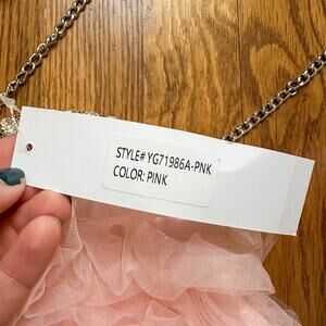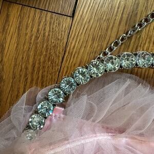 Alessia Pink Tulle Rhinestone Purse with Silver Chain Strap