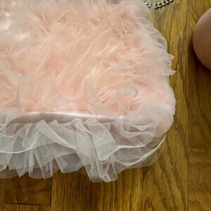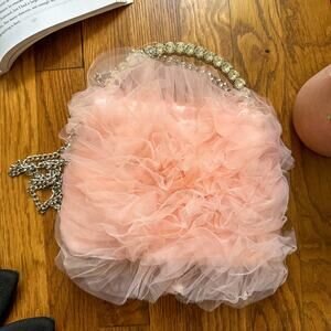 Alessia Pink Tulle Rhinestone Purse with Silver Chain Strap. Snap closure.