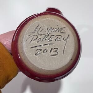 Alewine Pottery 2013 Gramps Stoneware Blue and Red Glazed Mug Cup