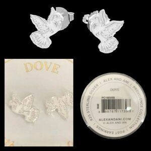 ITEM: Alex And Ani Dainty .0925 Sterling Silver Textured Dove Shaped Stud Earrings
