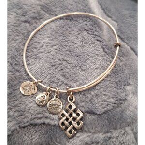 Alex And Ani Endless Knot Charm Expandable Wire Bangle Bracelet Silver Tone