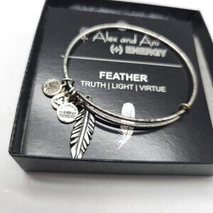 Alex And Ani Feather Bangle Bracelet Silver Finish Truth Light Virtue Adjustable