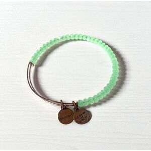 This Alex and Ani beaded bangle features beautiful faceted pale green beads that twinkle in the light, accented with copper-tone charms on a copper wire bangle. Expandable design fits most wrists.