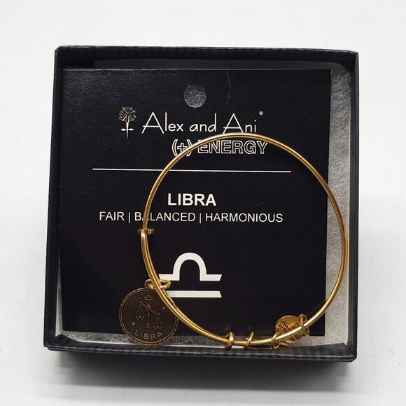 Alex And Ani Libra Zodiac Bangle Bracelet Gold Adjustable Charm Jewelry In Box