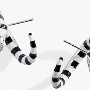 Add a twist of Beetlejuice® flair to your look with these hoop earrings inspired by the striped sandworm! Featuring the same bold black and white design, these earrings are a striking way to embrace your spooky side. Stack on this fun cuff for Halloween or whenever you're in the mood to channel otherworldly charm!