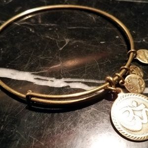 Hi, I am selling a, Guaranteed Authentic Alex And Ani OM Charm Bangle Bracelet Rafaelian Russian Gold Very Nice, In Excellent Condition. This is a beautiful authentic Alex and Ani bracelet, with the Om charm, in gold color, also this is a discontinued and rare design. The bracelet is one size fits all, with an expandable system. The condition is excellent, looks really nice and shiny, no damages, or tarnish. Please look at all the pictures.