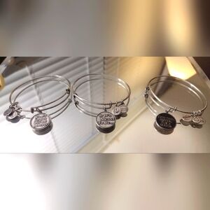 Alex And Ani Set Of 3 Words Silver Adjustable Bangles