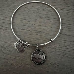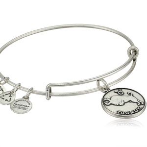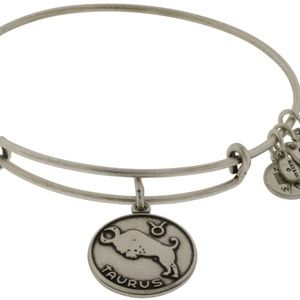 Gently used, Alex and Ani bracelet bangle featuring Taurus zodiac dangle charm. Adorn your wrist with the Taurus Zodiac Charm Bangle, featuring the Taurus bull. Taurus (born April 20 - May 20) is an Earth Sign, represented by the bull. Taurus possesses great passion, and is strong but careful when making any decisions. Wearing the Taurus Charm Bangle enables you to connect with the cosmic energies guiding your spiritual journey. Personalize your jewelry with your zodiac sign! Choose your own or give a personal gift to someone you love. This Rafaelian silver finish wire bracelet is adjustable in size. Bracelet is designed to wear alone, or to layer for a customized look. Alex and Ani’s patented Expandable Wire Bangle allows the wearer to adjust the bangle for a perfect fit as it adjusts to 3.25 inches in diameter.