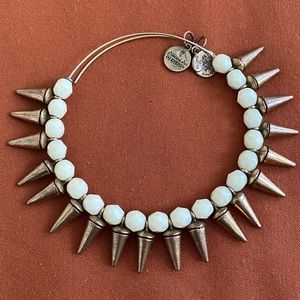 Alex & Ani bracelets in good condition. Includes silver Cape Cod dangle charm, gold and white spike bracelet, gold bamboo, and om symbol 🕉.
