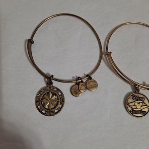 This Alex & Ani Disney Bracelet Bangle Set from 2015 showcases a Cruise Line Travel Charm in a striking Gold Tone. It's a Wire Bracelet style, perfect for any Disney lover.