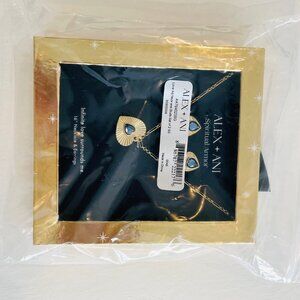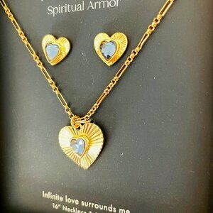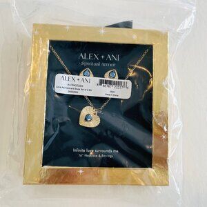 Alex & Ani Gold Tone Blue Heart Stud Earrings & Pendant Necklace Set New In Box