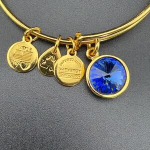 Alex & Ani Gold Tone Blue Rivoli Rhinestone Charm Bracelet