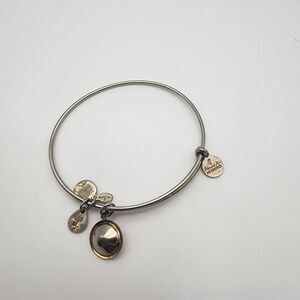 Alex and Ani silver tone June birthstone adjustable bangle bracelet with a pink crystal.