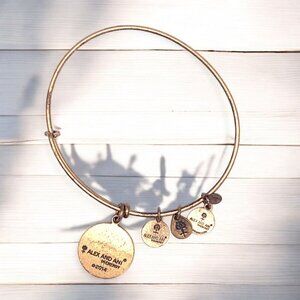 Alex & Ani "Live A Happy Life" Charm Bangle Bracelet Gold-Tone Expandable