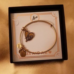Alex & Ani Love Heart Charm Bangle Bracelet Gold