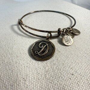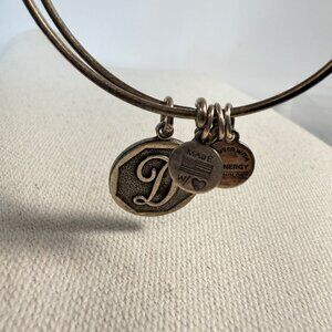 Stylish and adjustable Alex & Ani bracelet featuring the "D" initial charm in a silver-tone design with energy-positive charm accents.