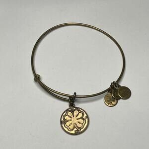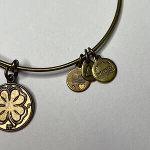 Alex & Ani bangle bracelet burnished gold tone signed costume jewelry LUCKY CLOVER theme costume signed jewelry