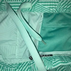 Inner drawstring with hidden inner pocket. Thin, breathable fabric with mesh sides.