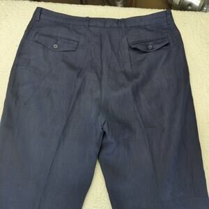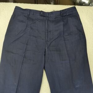 Alex Cannon 100% Linen Pants Men's Size 38/32 Navy Blue Pleated Summer Prep