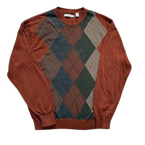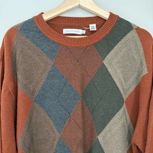 Alex Cannon Crewneck Argyle Sweater Size XL Rust Color Cotton