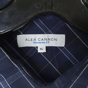Alex Cannon Long Sleeve Button Up Shirt Mens Size XL Blue Plaid Spread Collar