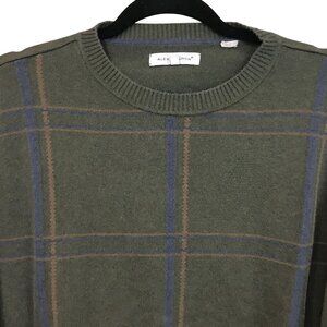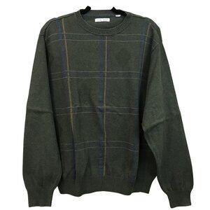 Alex Cannon Mens Green Plaid Long Sleeve Sweater Size L Crewneck