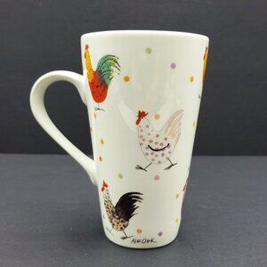 Alex Clark for Churchill Rooster Latte Mug Queen's Tall White Mug Chickens Dots