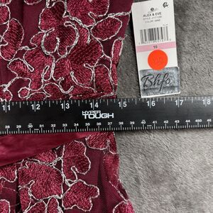 Alex & Eve NWT Embroidered Dress Sheer Lace Midi Wine Silver Floral Size 10 J104