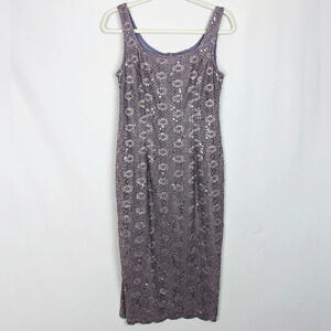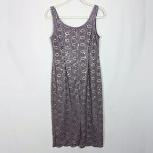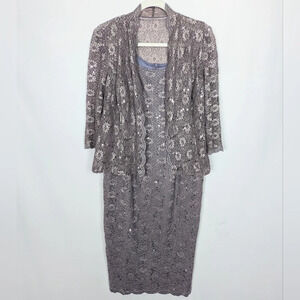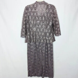 Alex Evening 10P Tea Length Sheath Lace Dress & Sheer Jacket Suit Set Sequence
