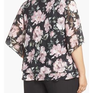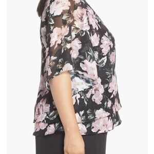 Alex Evening Flutter Sleeve Chiffon Blouse -Floral Layered Top Size 3X