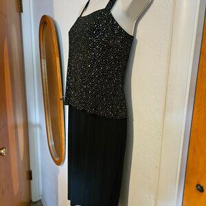 Excellent condition. Rhinestone top of dress, but poly so it is stretchy and comfortable. True to size 4P