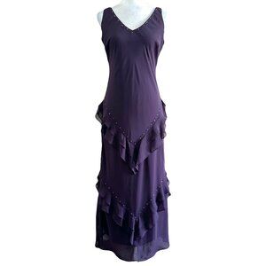 Alex Evening Vintage 90s Purple Ruffle Tiered Max Formal Dress Women's 10