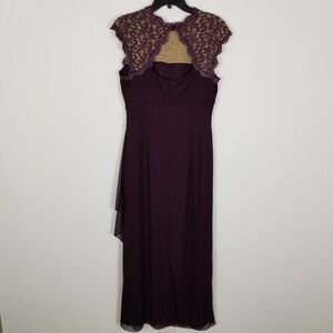 Alex Evening Women Lace Top Maxi Dress Size 10 Maroon Evening Gown Formal
