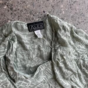 Alex Evening Women’s Medium 3 Piece Set Blue Silk Blend Sequined Floral Skirt Set Vintage