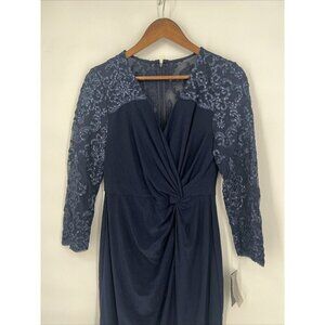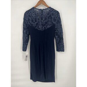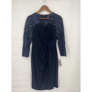 Alex Evening Womens Size 6 Navy Embellished Twist-Front Embroidered Sheath Dress