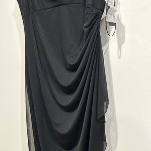 Alex Evenings - 132156 Cowl Neck Sheath Dress With Overlay Skirt black 14 P New