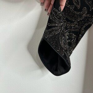 Alex Evenings 2 Piece Jacket Tank Set Womens Large Black Metallic Paisley Slinky