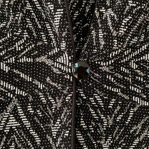 Preowned but no flaws. This does have glitter, it will come off. One button closure (see photos) with a beauty black gem facet looking button. Shoulder pads and glitter. Glitz at its finest! Perfect for an evening out or a wedding!