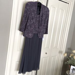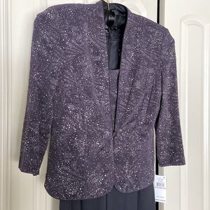 Alex Evenings 2-pc dress with sparkle jacket. Lined. Smoke color. 6 Petite
