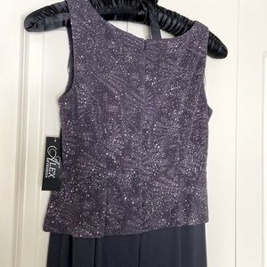 Alex Evenings fireworks 2 piece jacket dress is the perfect choice for Mother-of-the-Bride (& Groom) or for wedding guests! Jacket offers the ideal coverage for ceremony, while the sleeveless dress is perfect for reception dancing. Size 6 petite. Beautiful smoke color with textured sparkle jacket and lined sheer bottom. Tea-length. Bought at Von Mour for a wedding. New with tags!