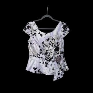 Alex Evenings Abstract Satin Peplum Blouse Jewel Accent Formal NWT, Size Medium