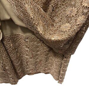 Alex Evenings Beige Lace Sleeveless Cocktail Dress Sz 12 Scalloped Hem & Sequin
